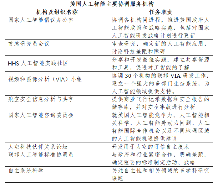 美国为人工智能发展做出了系统性规划,谋定了9条战略方向并部署了系列重要任务。一是对人工智能研究进行长期资金支持,依托国家人工智能研究所促进人工智能基础研究,支持人工智能横向、纵向多维发展。二是开发人与人工智能的高效协作方法,提高人工智能的可用性,推动人工智能在研发设计、医疗辅助中的作用,发展协作机器人。三是研究人工智能的伦理、法律和社会影响,提高人工智能的透明度和可解释性。四是促进人工智能系统的安全性,支持人工智能风险管理和安全审查标准研究。五是建设用于人工智能训练、测试、开发的共享公共数据集和环境,在机器学习、智能制造、医疗等领域创建训练数据集。六是完善人工智能技术标准和评估能力,推进人工智能数据、性能评估,研究稳健性、安全性和隐私标准的制定。七是培育壮大人工智能人才队伍。八是扩大公私伙伴关系,建设系列中间协调服务机构,优化国家研发生态系统,培育地区创新引擎、建立国家网络安全卓越中心等。九是为人工智能研究领域的国际合作制定原则性协调方法,推动人工智能技术评估、标准、安全等方面的国际合作。
