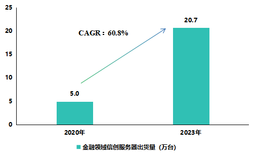 图注:2020VS2023年中国金融领域信创服务器出货量及复合增长率统计