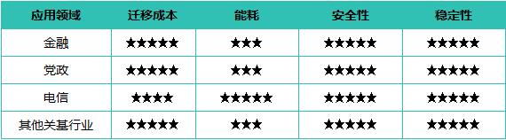 图注:金融应用领域信创服务器与其他应用领域需求点比较