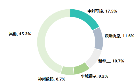 出于安全性、稳定性及迁移成本方面的考量,银行、保险及证券公司等金融机构采购的信创服务器主要是国产x86路线服务器以及ARM路线服务器。其中,x86路线国产服务器主要搭载海光CPU,主要原因是海光CPU安全可信、性能稳定且兼容市场主流的x86指令集,具有成熟且丰富的应用生态环境,支持多个版本的数据库、中间件、AI算法、云计算平台等,迁移成本较低;ARM路线国产服务器搭载的是鲲鹏CPU以及飞腾CPU。从中标项目来看,相较于搭载飞腾CPU的ARM路线国产服务器,搭载鲲鹏CPU的ARM路线国产服务器更受金融机构青睐。基于兆芯CPU的x86服务器以及基于LoongArch指令集的国产服务器在金融机构公开招标项目中很少中标。按照不同品牌出货量统计,2023年中科可控金融信创服务器出货量占比达17.5%,稳居行业第一。