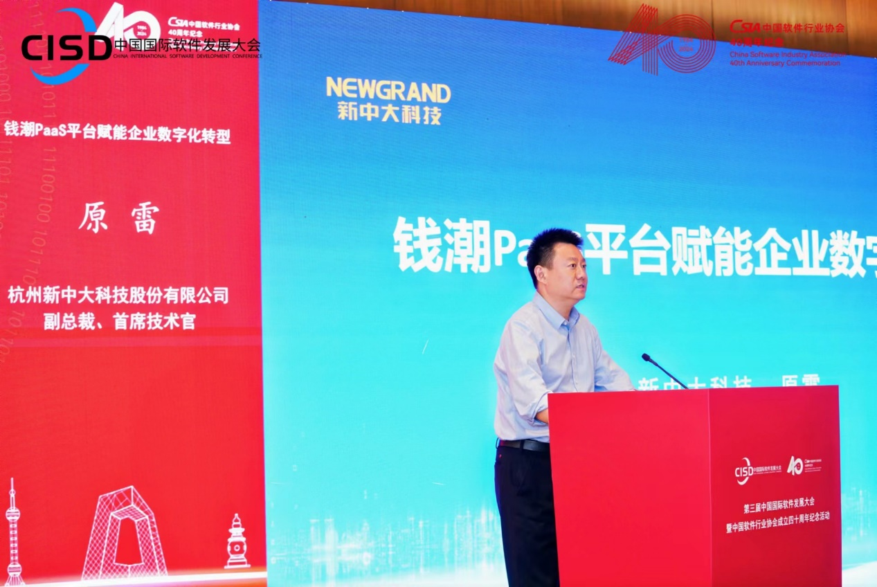 杭州新中大副总裁、首席技术官原雷指出钱潮PaaS平台开创了“装配快搭”数字平台建设新模式,提升了企业数据资产化管理新能力,打造了AI智能应用新体验。