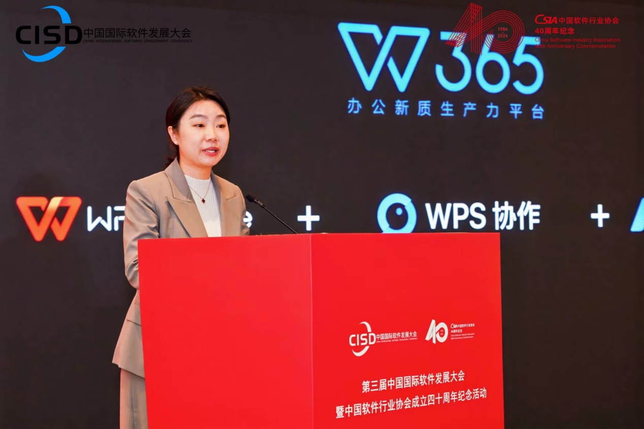 金山办公解决方案总监王晛发表了“AI让协同办公更高效”主题演讲,详细阐述了WPS 365如何通过人工智能技术引领办公模式的革新,为用户提供前所未有的办公体验。