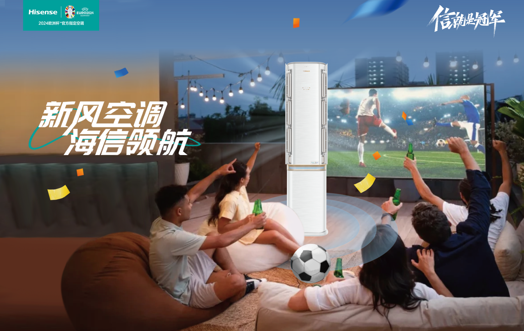 “新风空调,海信领航”,作为欧洲杯官方合作伙伴,海信空调推出“看球呵护”场景功能。据了解,该场景功能于6月3日上线,用户使用海信爱家App进入“看球呵护”场景,通过海信新风空调高效的空气净化技术,能够有效去除室内空气中的有害物质,如灰尘、细菌、病毒等,显著提升室内空气质量,为用户打造更加健康、舒适的观赛环境。