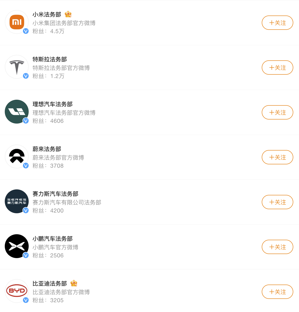 2023年以来,包括比亚迪、蔚来、小鹏、理想、零跑在内的多家车企,均开通了法务部官方微博账号。这些法务部账号所发微博内容,主要以新闻事件辟谣、侵权案件通报为主。