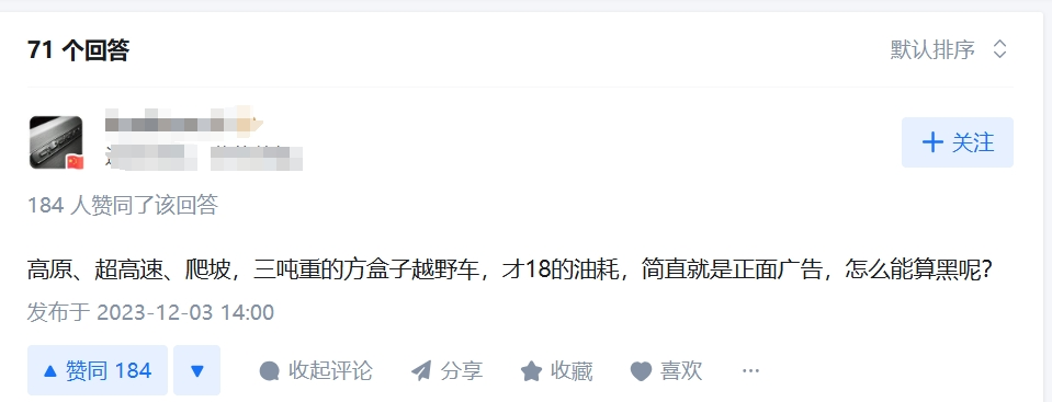 例如,经过姚*强的刻意测试,多数网友不仅没有怀疑方程豹豹5的质量,反而见识到了其在极端条件下的油耗表现,对方程豹的产品力有了新的认识。