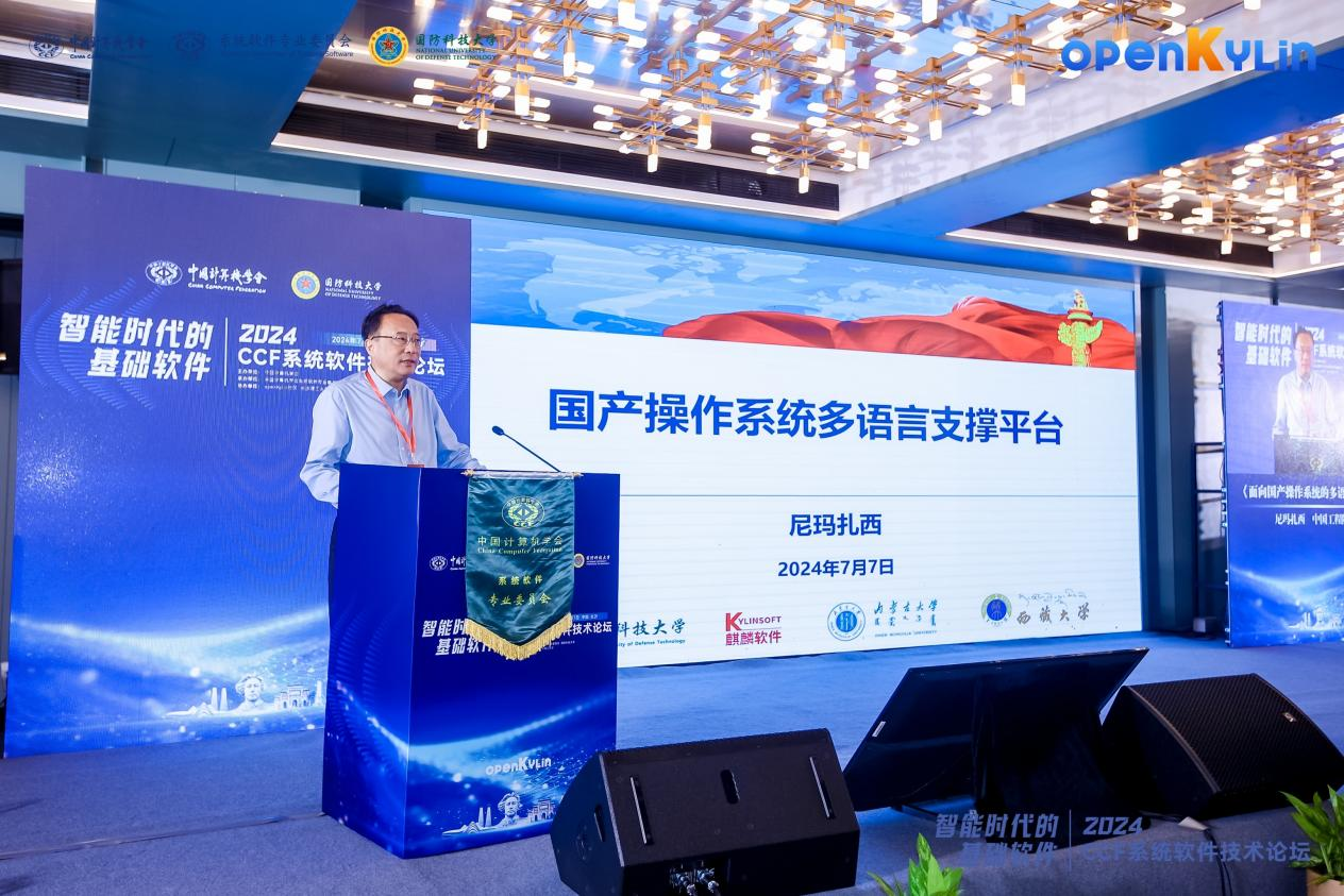 尼玛扎西院士则以《面向国产操作系统的多语言支撑技术》为题与大家进行交流,他表示提高我国基础软件竞争力需采取有效策略,充分利用丰富的语言文字资源,积极响应国家需求,开发实用、好用的多语言操作系统,推动我国科技创新和发展。