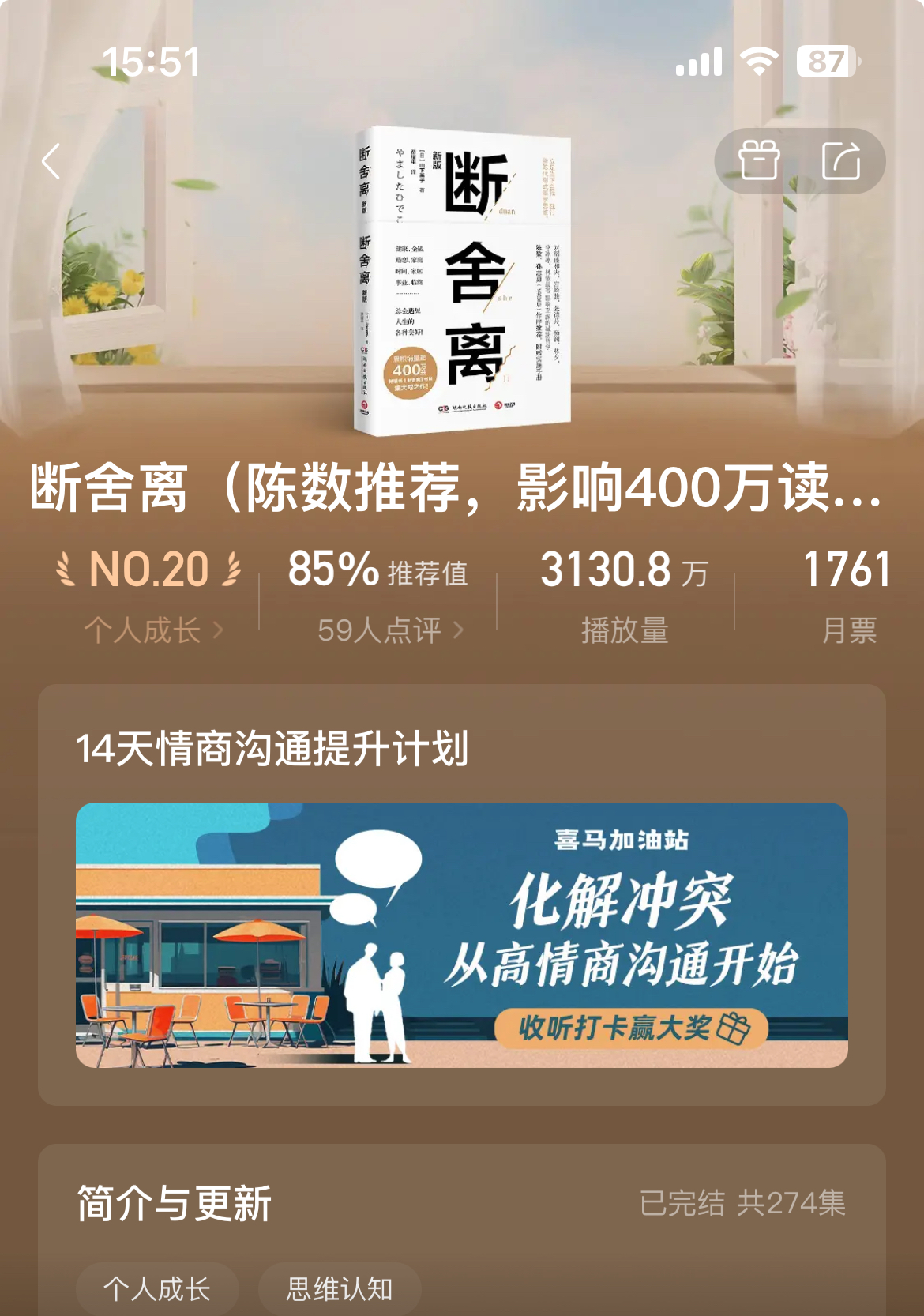 通过“声游巴黎”、“冠军心态”、“赛事风云”等活动模块,喜马拉雅推出了丰富多元的体育衍生内容,让用户在感受体育魅力的同时,也能满足自身个性化的有声阅读需求,获得精神上的滋养。《悲惨世界》《包法利夫人》《小王子》《查泰莱夫人的情人》《红与黑》《三个火枪手》《基督山伯爵》《卡门》《鼠疫》等法国经典文学作品的累计播放量破9,200万。个人成长类内容也颇受用户欢迎,《世界冠军邓亚萍的心力课:关键时刻拥有稳定积极的心理素质》《别输在不会表达上》《断舍离》成为其中受关注的TOP3。《世界冠军邓亚萍的心力课:关键时刻拥有稳定积极的心理素质》在“声临巴黎”活动期间播放量新增46,000+。听友们致力于通过学习世界冠军的强大心态,促进自身成长。此外,也有许多用户热衷于讲述法国政治、经济、文化的专辑。《法国总统马克龙传》《精读法国:百年奥运背后的法国史》《旧制度与大革命》《巴黎奥运 | 文艺大赏》《趣听奥运 | 聚焦巴黎奥运,趣听历史风云》等专辑成为订阅首选,累计订阅量超1.7万。