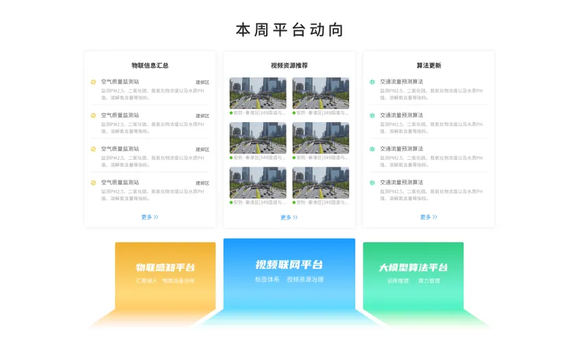 在数据管理方面,平台通过构建融合感知统一规范体系,运用统一数据治理模块,对数据实现全生命周期严格规范与管理。目前已接入视频监控、消防水压监测、电子水位仪、可燃气体监测等67类30.6万台感知终端,其中包括20万路视频设备,涉及园区社区、高架立交、医院学校、江河水务、安全生产等全域城市场景。