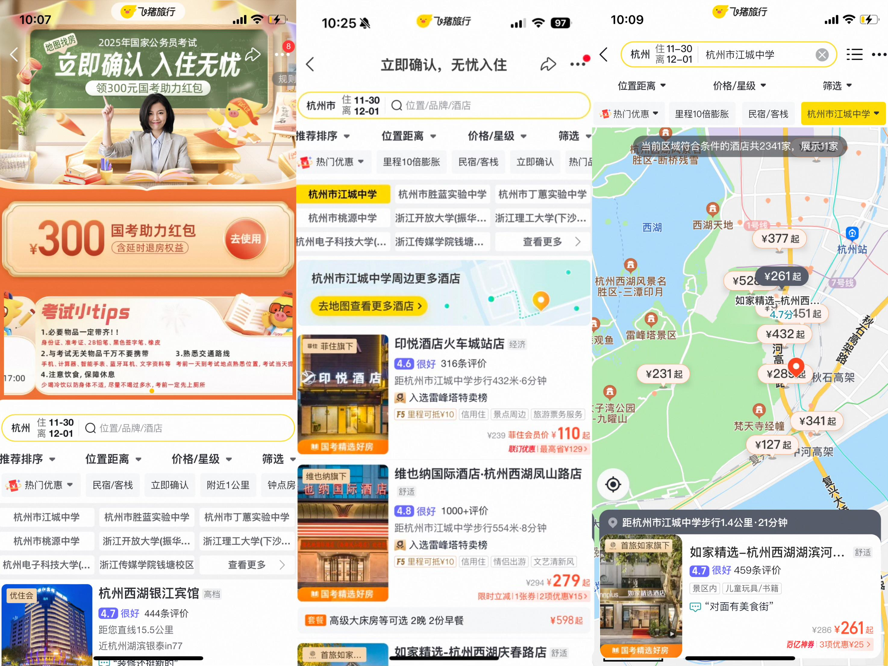 考生通过飞猪App或淘宝App搜索“国考酒店”即可直达专题服务页面。