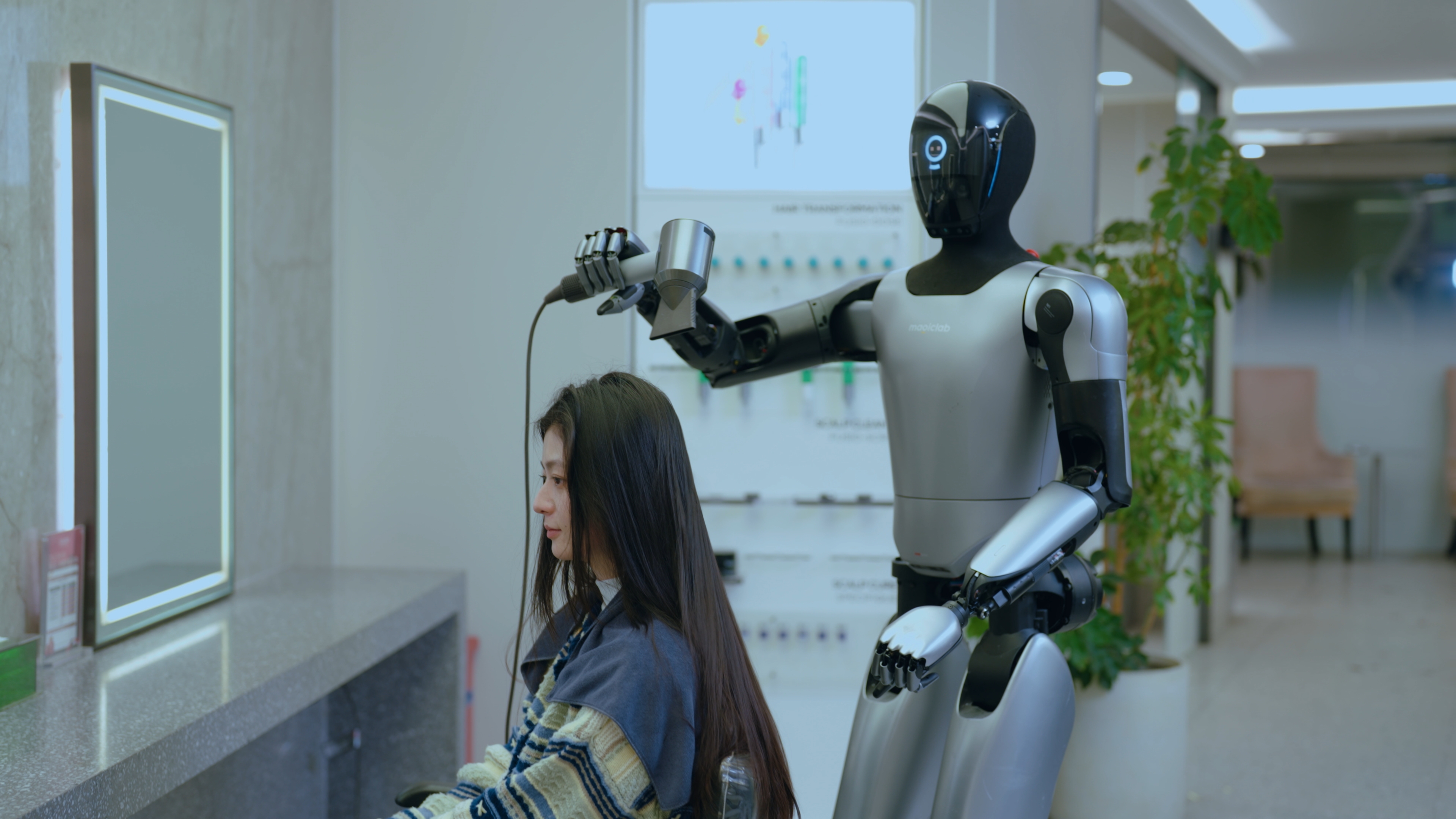 发布会上,人形机器人小麦展示了在商场不同场景的工作案例,人形机器人在不同场景中承担了多类工作岗位,包括停车场交通疏导、汽车门店导购、餐厅服务员及美发工作人员等。