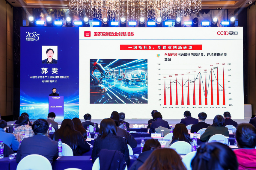 在成果发布环节,郭雯对《制造业创新指数报告(2024)》的主要内容进行了深入解读。报告从创新资源、创新产出、创新协同、创新绩效和创新环境五个维度,全面分析了2013年至2023年十年间我国制造业创新发展趋势变化,对比评价了2023年31个省份制造业创新水平,展示了制造业创新发展的亮点和挑战,为推动制造业高质量发展提供决策参考。