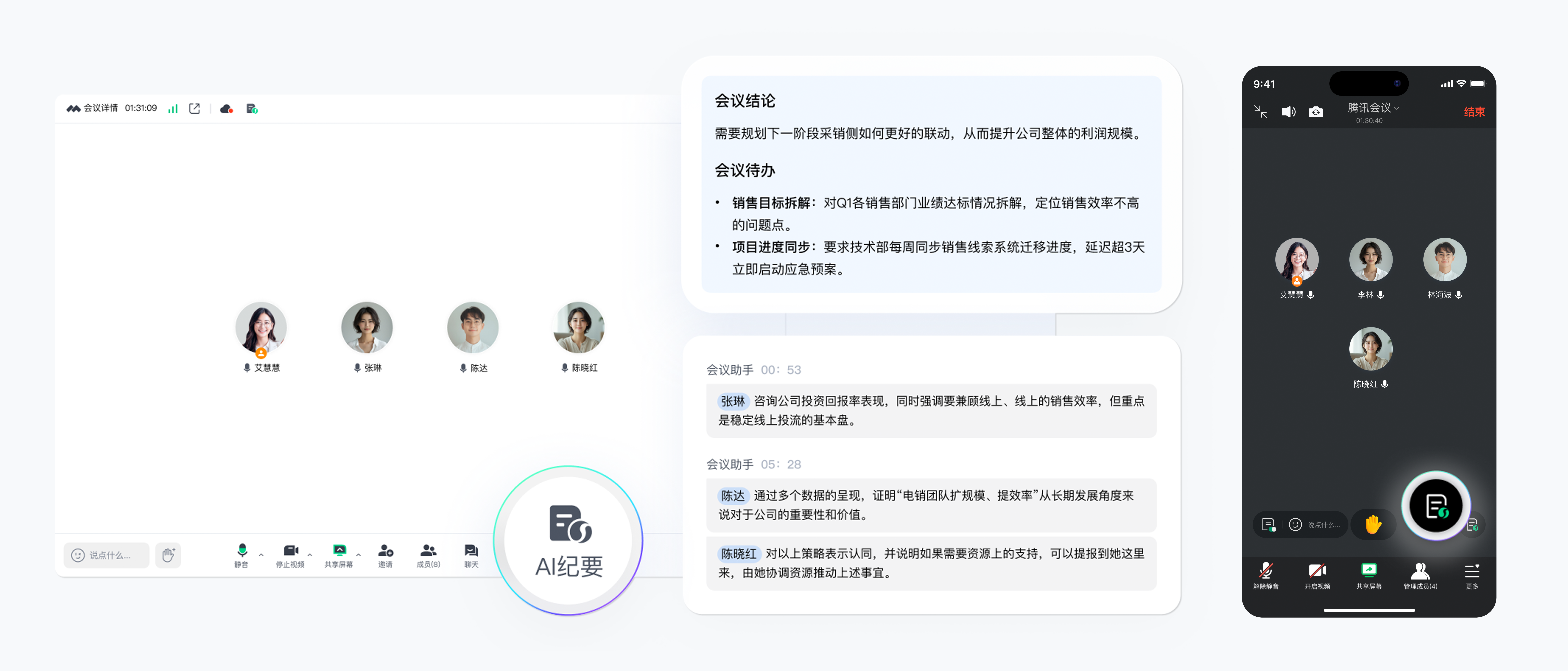 腾讯会议侧表示,“AI纪要”功能将实时会议记录和AI能力结合,进一步优化会议体验,将用户从繁琐的会中记录工作中解放出来,真正聚焦于沟通与创造本身。