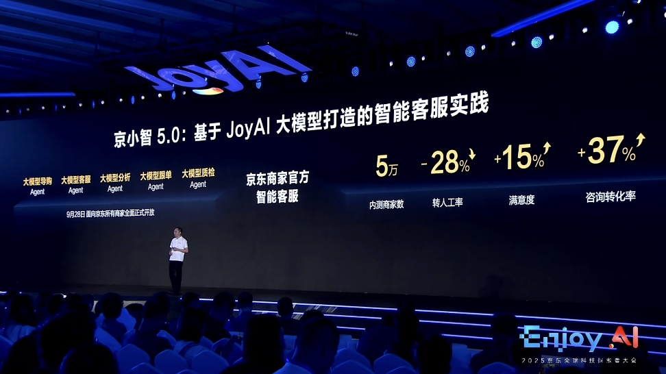 【赛迪网讯】9月25日消息,2025 京东全球科技探索者大会(JDD)在北京举行,大会正式发布京小智 5.0——电商智能客服行业 Agent 原生应用产品,该产品将于9月28日面向所有京东中小商家免费开放。