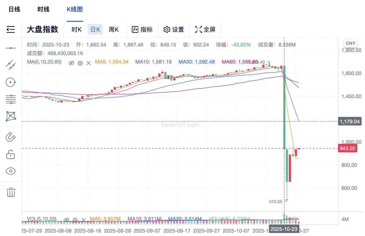 在短短两天内,据SteamDT、EuroGamer等媒体报道,整个CS2饰品市场总估值蒸发约20亿美元,市场指数从1662点暴跌至最低510点,跌幅近70%。有玩家单日亏损24万元,更有知名饰品商人称自己“3小时蒸发超500万元”。
