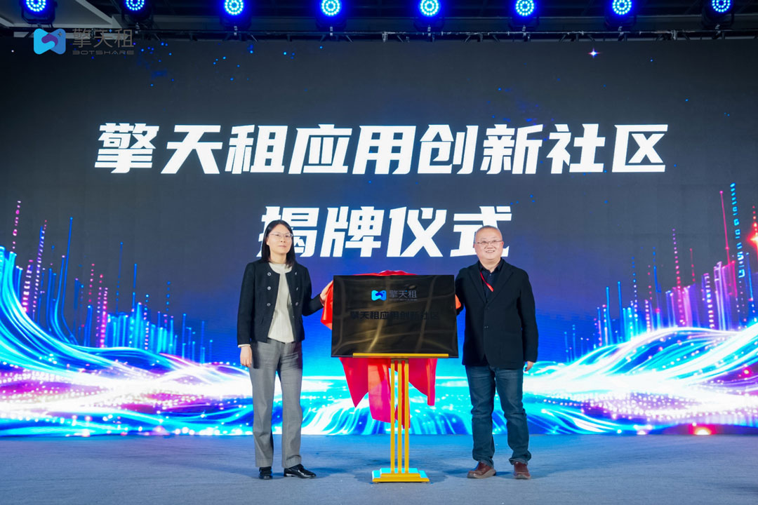 大会现场,“擎天租”应用创新社区正式揭牌。李一言在仪式上介绍,浦东国资身兼平台的天使投资方与战略合作伙伴,为擎天租及其生态企业提供了位于张江科学之门模力塔及张江机器人谷的办公与创新社区空间,全方位助力平台发展。