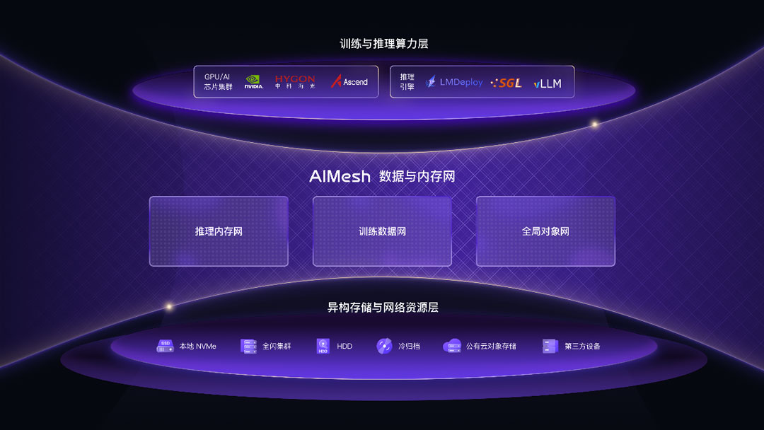 • MeshFS(打破IO墙):解决GPU等待数据的空转难题,以超友商50%的写带宽,确保数据像电流一样极速供给。