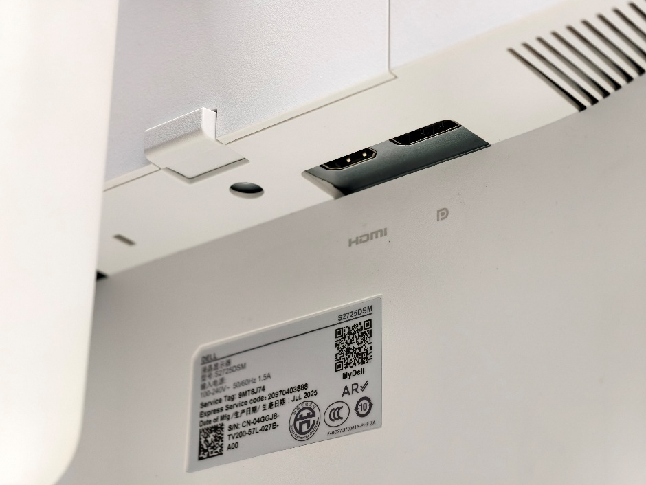 接口方面,S2725DSM显示器配备1×HDMI端口(HDCP1.4)和1×DisplayPort 1.4(HDCP1.4),满足主流PC和主机连接需求。