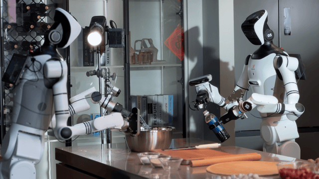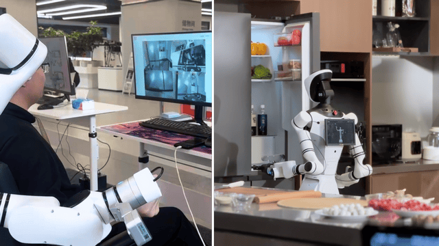 这场看似简单的“厨房秀”,实则完成了一系列高难度动作:14公斤力控的冰箱门精准开启、零洒落的液体平稳搬运、仿人力控的细腻“和馅”操作。每一个动作背后,都是对机器人综合能力的极限测试。而支撑这一切的,是睿尔曼“硬件+数据+远程作业网络”的技术支撑——睿尔曼把真实人手的操作,在人形机器人数据训练中心拆解成原子动作,通过大量真机数据积累与反馈,构建起可泛化的动作模型。