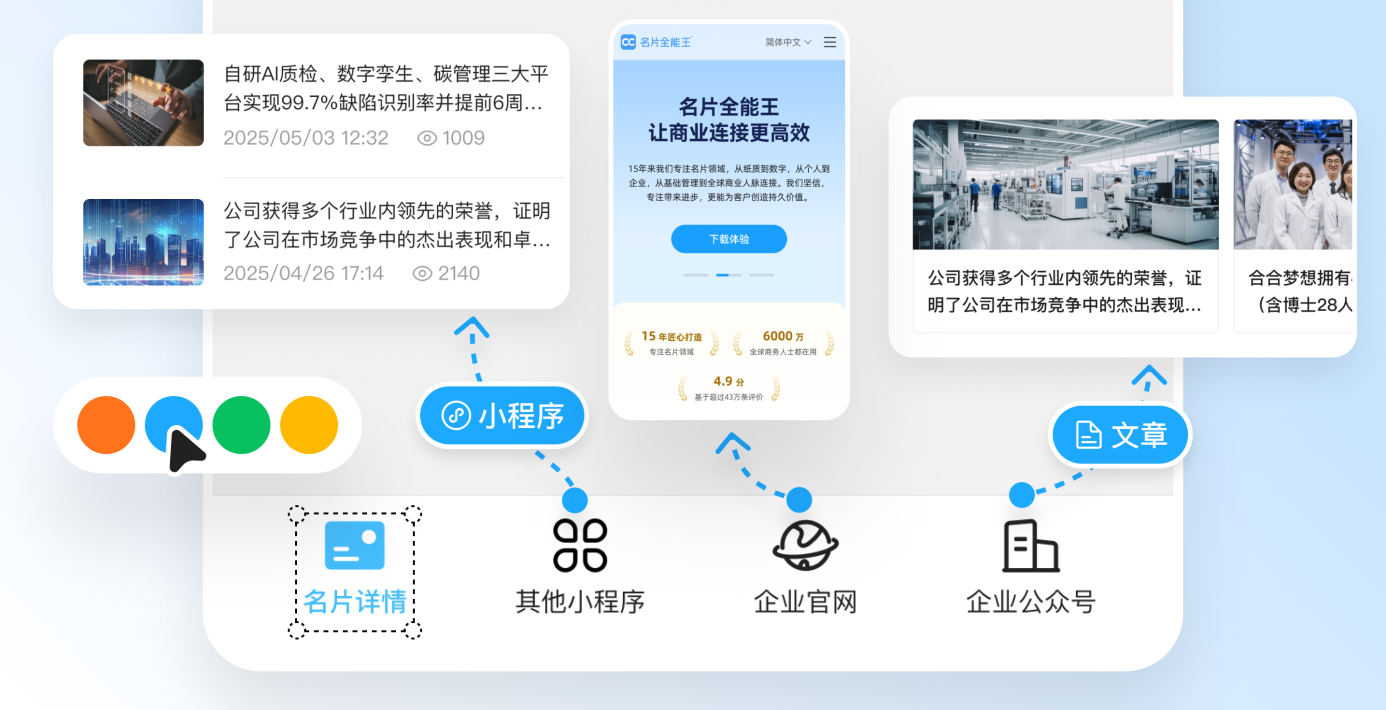 从简单呈现联系方式,到一张“可逛、可追踪”的“高定名片”,名片的变革折射出企业数智化的大趋势。未来,名片全能王将持续瞄准智能商务社交领域,将商业人脉转化为企业数字资产,助力千行百业获取增长新动能。