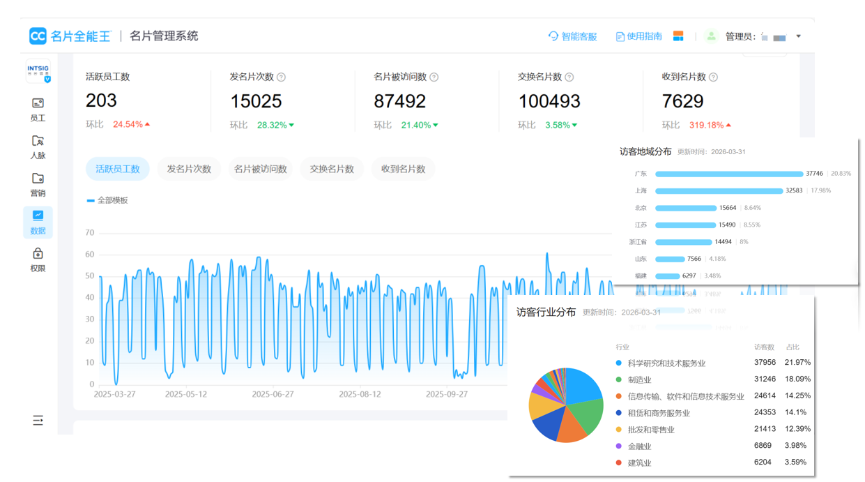 名片全能王后台数据看板(虚拟数据,仅作演示)