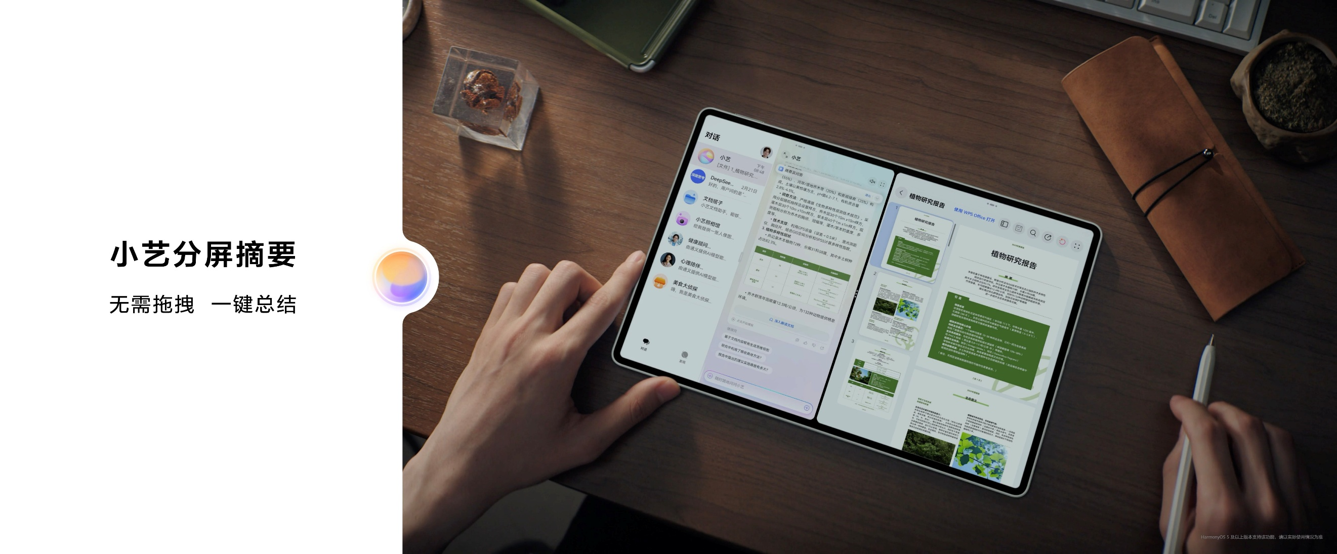 除了专业应用加持,HarmonyOS 5还带来了更智能的生产力体验。小艺支持智能分屏功能,可以自动识别本地文档,一键生成摘要,识屏对话功能可以就屏幕中的内容直接向小艺提问以获得结果,配合手写笔还可直接圈出小艺,即时问答。