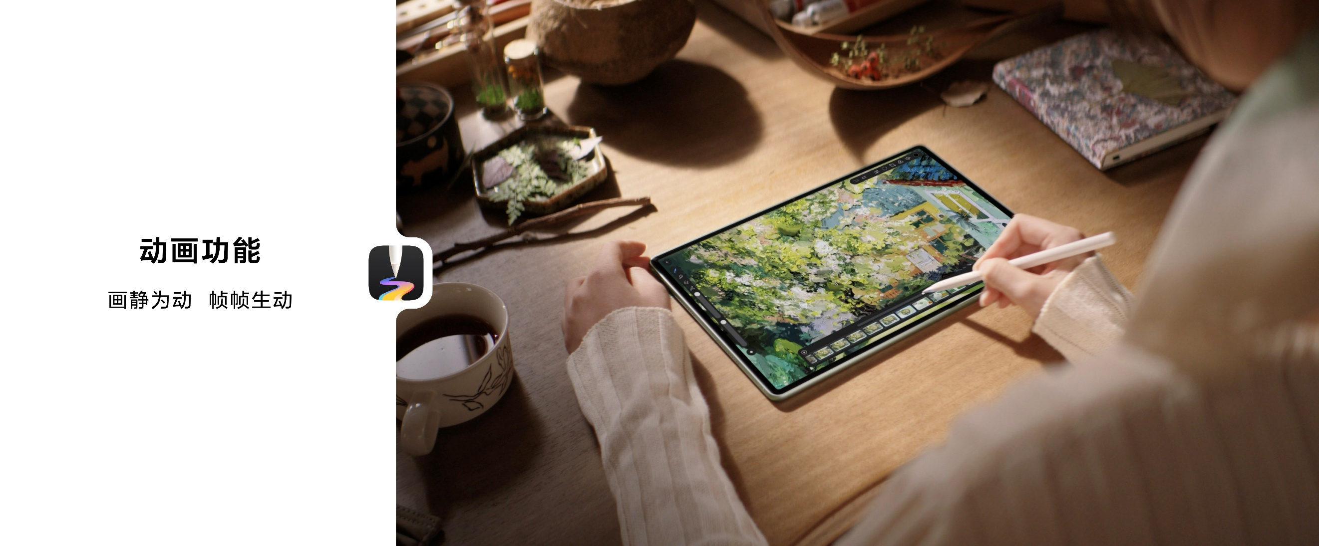 围绕创作场景,HUAWEI MatePad Pro 12.2 英寸重点升级了天生会画App,全新的立体油画笔刷可以模拟真实水粉、丙烯在纸纹上的颜料堆积感,笔触所及,与真实油画质感几近一致。新增动画功能,通过简单操作即可让画作活灵活现地动起来,还能调节帧与帧之间的变化速度,原本静态的数字画作,多了层看得见的生命力。