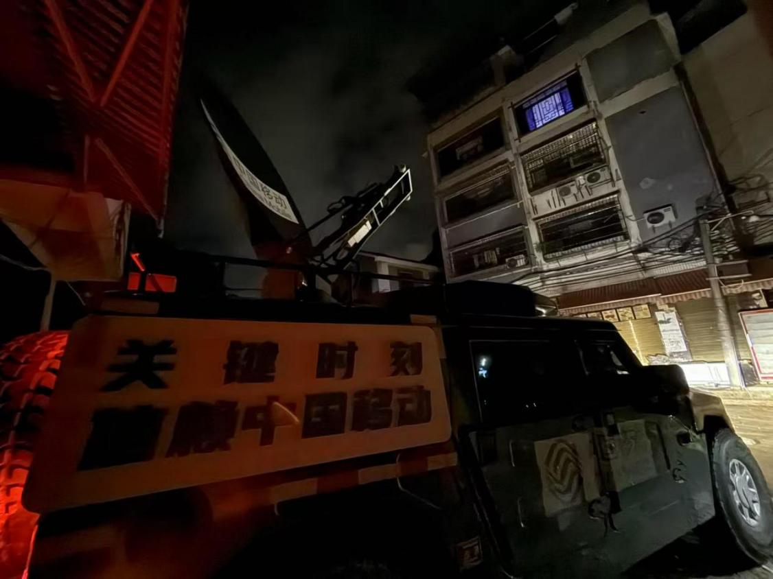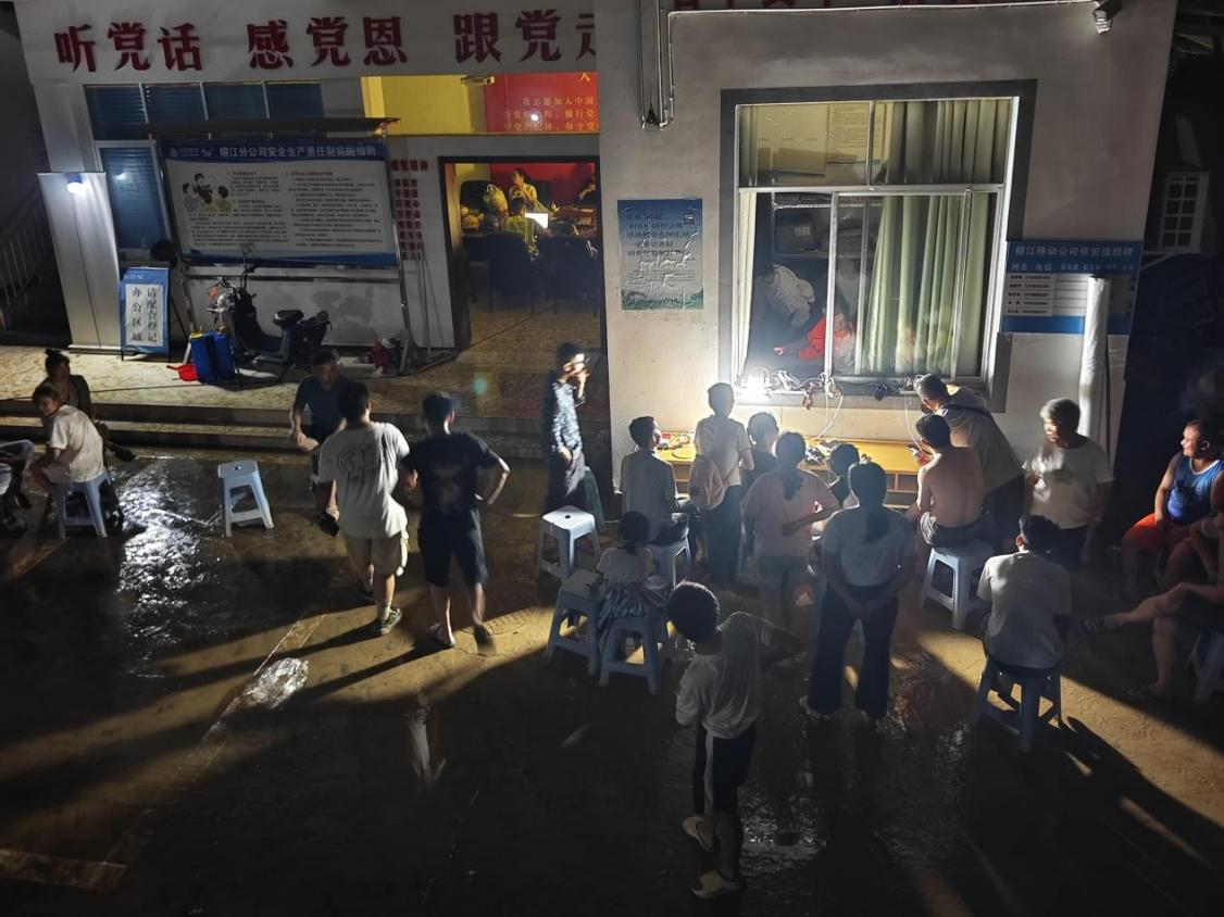 当时间回到6月24日中午,在榕江县城古州北路的中国移动贵州公司黔东南榕江分公司大院内,堆积的防洪沙袋也挡不住上涨的洪水。很快一楼的发电机房就因为进水停止了运行,四楼机房有备用电力保障还在继续运行,支撑着这一片的信号。全城停电的24日晚上,一则消息在榕江人的朋友圈传开:“手机需要充电的朋友,可到榕江移动公司来充电!”收到消息的群众赶来,围坐在一起,给手机充电,给在外的亲友打去电话报平安。在周围的一片漆黑中,院里靠发电机亮起的灯光格外明亮。