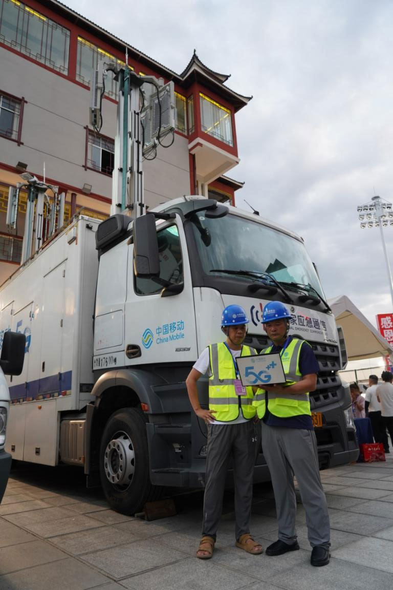 自收到政府发布的洪涝灾害预警后,中国移动已经做好了战汛准备,应急保障“翼龙战队”第一时间赶往受灾区域开通应急卫星通信,抢修队伍全力恢复基站运行。抢通兴华乡高旧村的通信后,村支书特别激动,握着中国移动抢修人员的手说,你们来得太及时了,他要赶紧打电话汇报村里的受灾情况。此时,抢修人员已经连续奋战了72个小时,抢通了“榕江至定威方向”这条重要的通信传输线路,打通通信“生命线”。在受灾严重的榕江县场坝社区、大十字社区,中国移动还调度了一架中型复合翼高空无人机基站,架起“空中信号”为用户提供语音、短信和上网服务。
