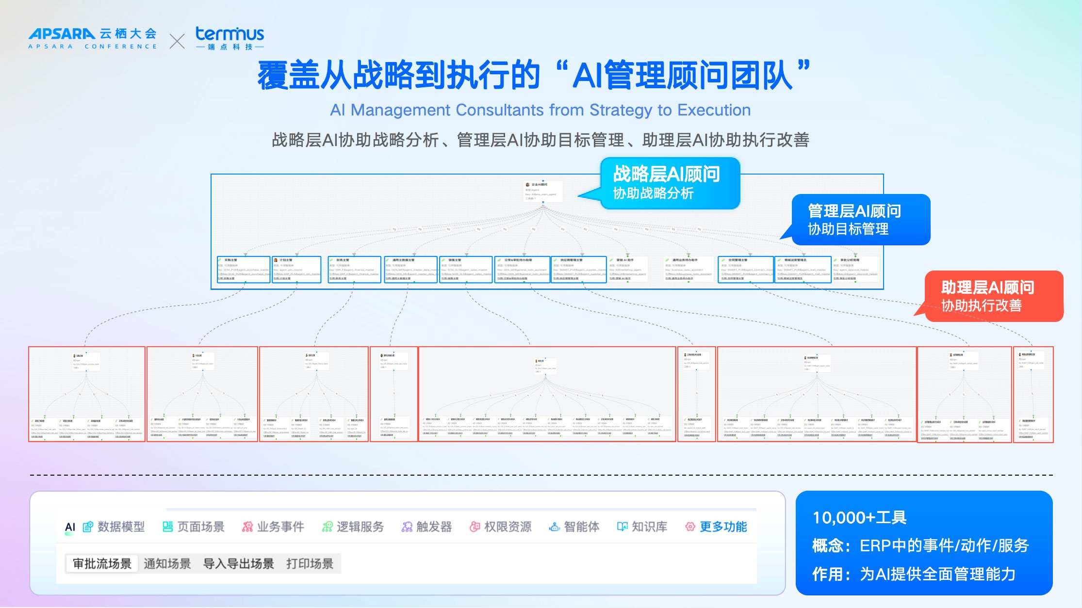 直到2024年底,Agent等技术的成熟为端点科技带来了决定性的突破口,即按照将所有功能给到AI,让AI操作系统的方案进行。因为底层平台Trantor是原始数据驱动的,所以可以将全量系统能力给到AI。同时,公司定义了AI进入软件的最佳实践或规范,改变了以往软件界面给人操作的模式,让人类员工接收AI操作的结果,AI会告知员工需要做什么。