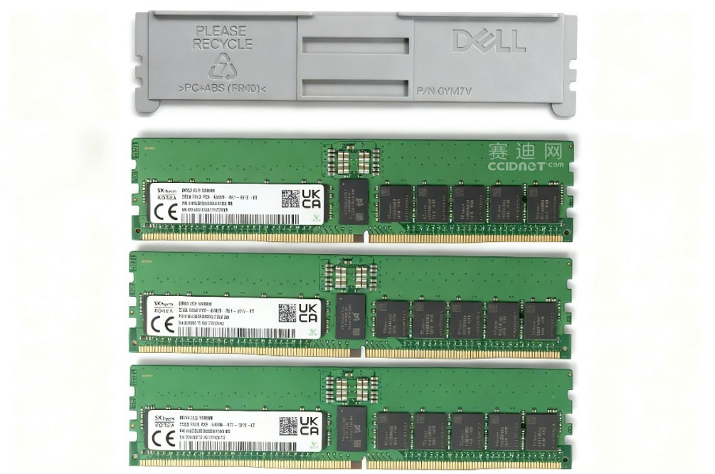 在许多真实业务场景中,内存往往是决定服务器性能上限的关键因素之一。本次送测的PowerEdge R7725配置了16 × 32GB RDIMM,并采用双列(Dual Rank)设计,频率最高可达6400MT/s,构成总容量512GB的高带宽内存系统。这套配置不仅在容量上满足主流虚拟化、数据库与现代化推理场景的需求,更在架构与带宽利用上充分体现了第五代EPYC平台的优势。