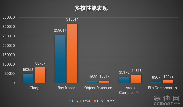 而在多核性能方面,由于第五代EPYC的设计强调的是性能与架构的一致性。也就是说,不仅是单个核心很强,更是在任务量不断叠加、线程不断增长的情况下,仍然能维持平稳的处理曲线。在进行大规模数据处理、现代化推理服务或虚拟化多租户应用时,你能明显感觉到吞吐量更高、调度更顺滑、延迟抖动更小。