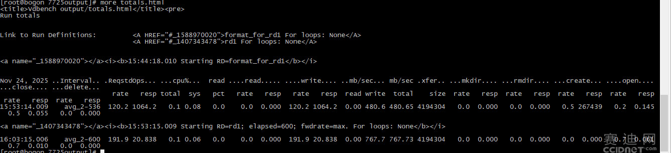 为了评估R7725服务器在高并发存储负载下的实际表现,我们对配置了单个960GB SSD的测试机进行了Vdbench测试,采用4MB随机写,并发线程数为128,测试持续10分钟。该测试主要关注IOPS、吞吐量、响应延迟以及CPU占用情况。