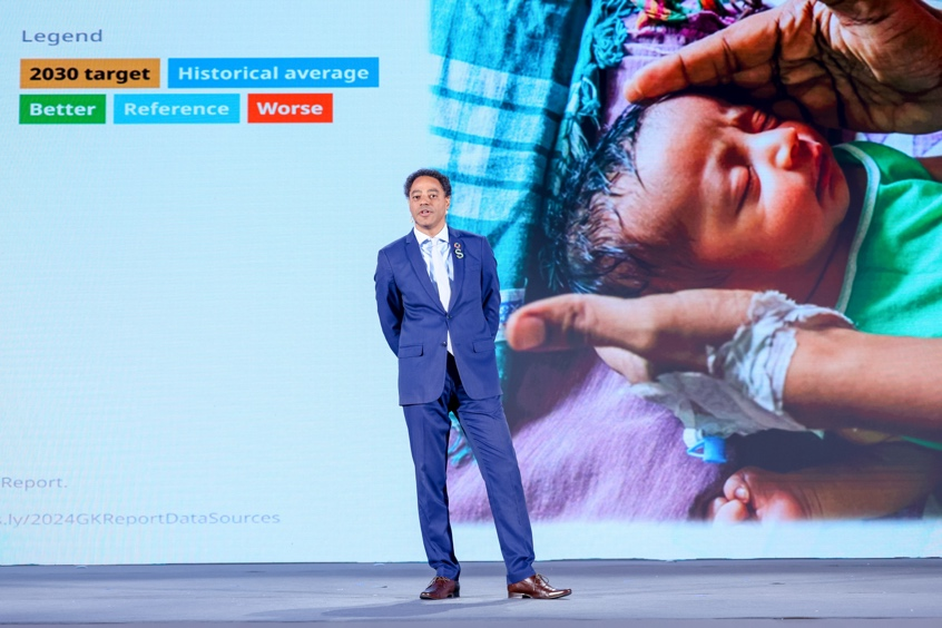 图说:比尔及梅琳达·盖茨基金会“目标守卫者”项目全球负责人、副主任Dawda Jobarteh在S大会上分享。