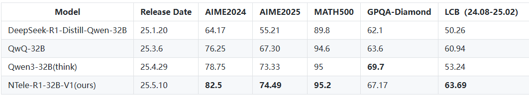 在开源的6个大模型中,NTele-R1-32B-V1电信大模型成为焦点。该模型基于DeepSeek-32B-Distill架构训练,仅用800个精心筛选的样本(含400个数学问题与400个代码任务),就在多项权威测评中实现对行业标杆模型的超越。数据显示,其在AIME2024测评中得分82.5,超越Qwen3-32B的78.75;在MATH500测试中准确率达95.2%,领先同类模型1-2个百分点。这种“小样本高效训练”能力,为降低AI开发成本提供了全新范式。 中兴通讯AI研发中心负责人解释:“NTele-R1-32B-V1 是从 DeepSeek-32B-Distill训练的,实现了‘少而精’的训练效果。”目前,该数据集已同步开源,开发者可直接获取用于模型优化。