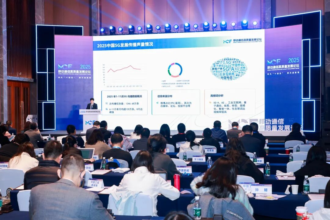11月21日,在2025移动通信高质量发展论坛上,《2025中国5G发展传播力分析》(以下简称《分析》)发布。记者获悉,2025年1月至11月,全网5G相关传播信息量达1346.68万条,呈现快速上涨态势,传播焦点从基础建设转向深度融合与前沿探索,5G成为推动实体经济与数字经济深度融合的关键力量。