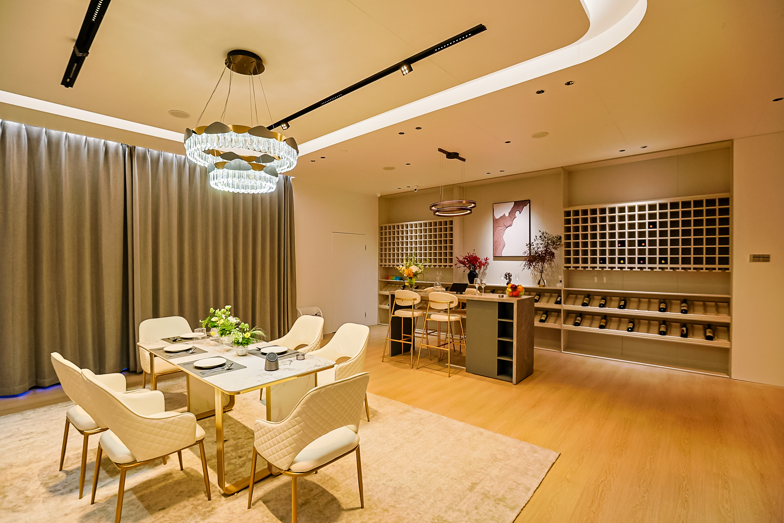 华为还基于真实别墅场景的智慧体验打造了全屋智能别墅体验区,为消费者带来“千平未来豪宅”的高端体验。别墅体验区设有庭院、玄关、客厅、餐厅、酒窖&吧台等空间。庭院的智慧灌溉与安防,通过万能智点等技术实现了传统设备的智能化控制;进入客厅,消费者可以通过华为全屋智能的智能中控屏S2、智慧语音、超级快控等丰富的交互方式,设置各种场景模式,如会客模式、专注模式、观影模式等,重塑智慧体验;酒窖和吧台的存酒管理、品酒模式也让品质生活更进一步,构造智美兼备的现代生活格调。