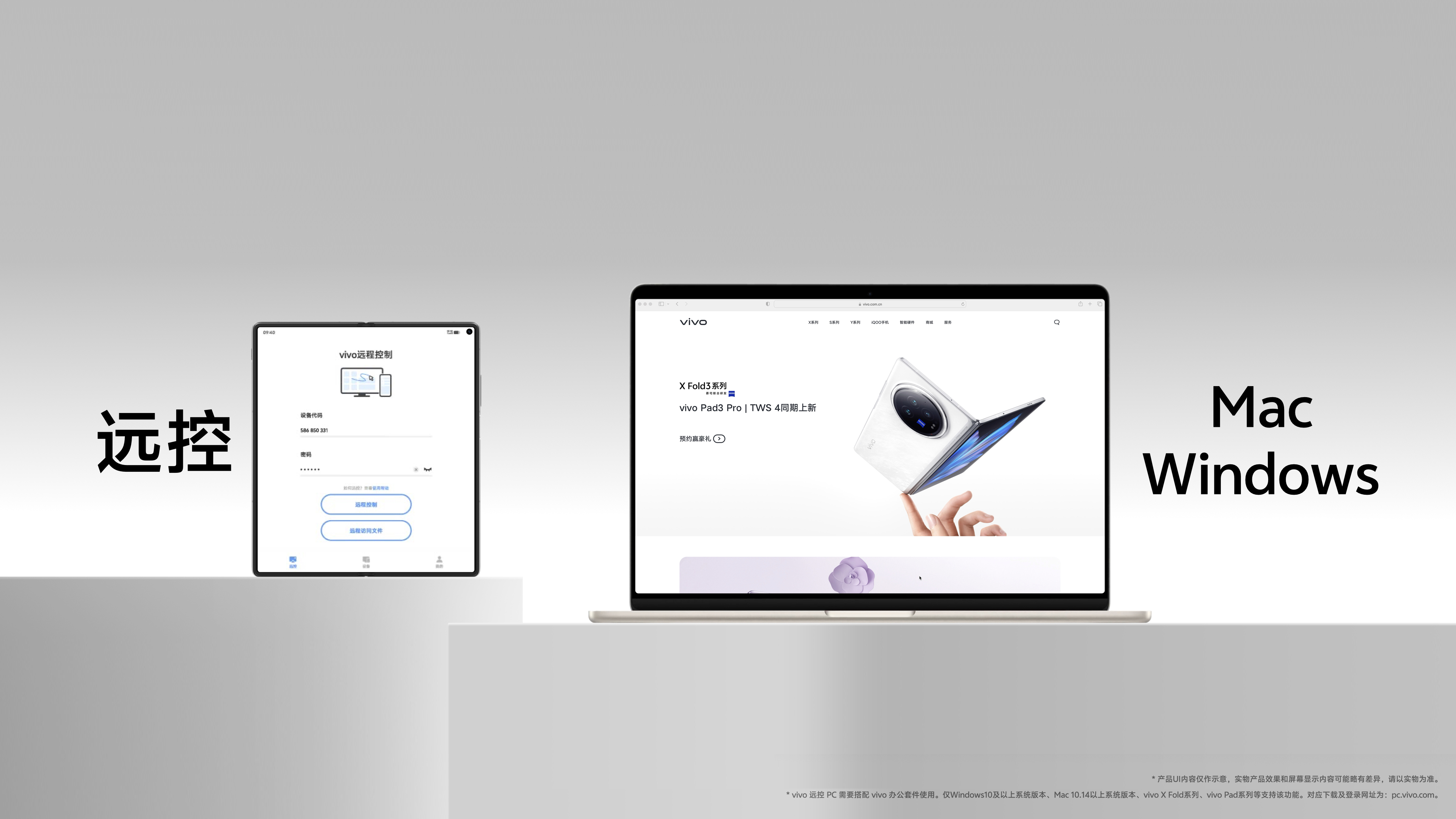 vivo X Fold3 系列支持手机、平板、网页、Windows、Mac五端协同,通过跨屏互联和无缝数据流转,为跨屏办公探索无限可能。vivo远控PC支持连接Windows/Mac电脑,远程访问PC文件,并可远控电脑界面投屏到电视屏幕。vivo万能文档可打开Pages、Numbers、Keynote、CAD、PSD、Xmind等57种专业文件格式,并支持格式转换,查看稳定流畅。