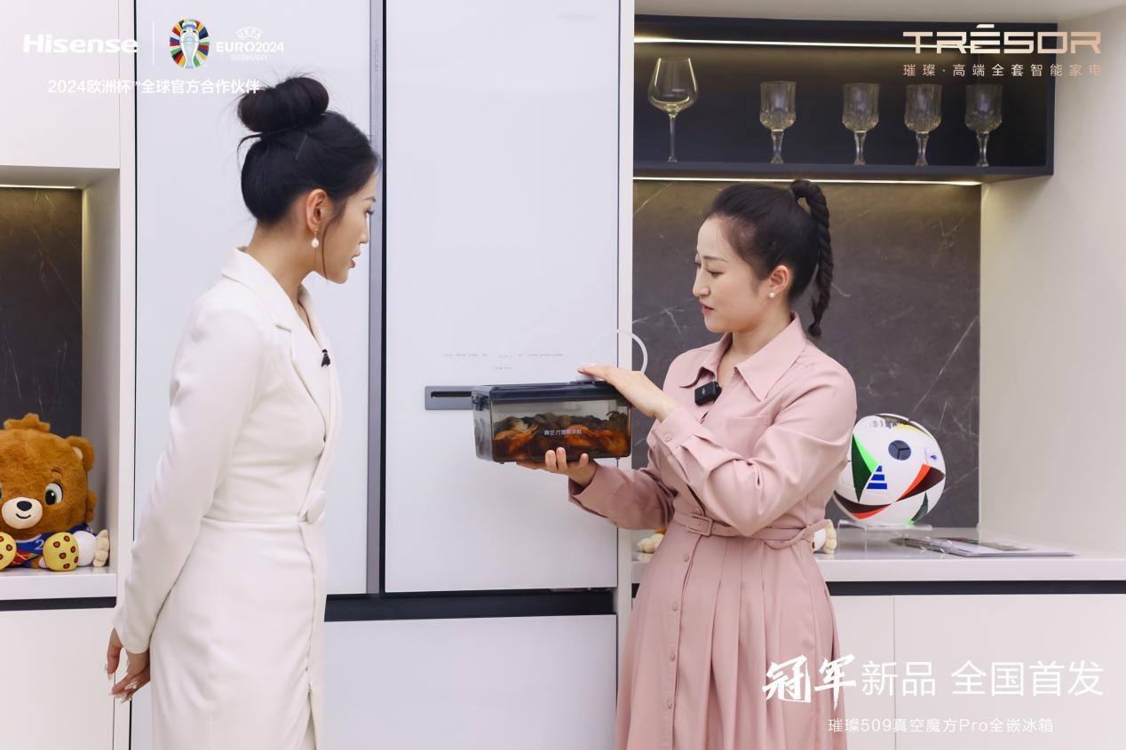 4月26日,海信冰箱在“海信冠军新品季”直播间进行了欧洲杯指定冰箱——海信璀璨509真空魔方Pro全嵌冰箱的全国首销。这款冰箱通过全新升级的真空魔方Pro为用户带来冠军级别的、新鲜有序的生活体验。当天,冠军新品冰箱509在全国线上线下同步开售,并附赠了多重惊喜权益。