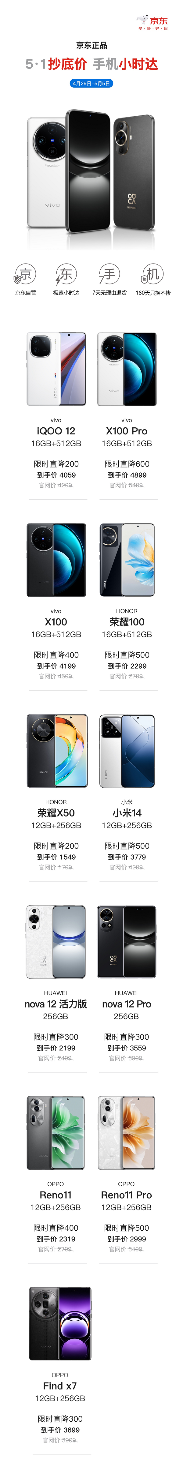 OPPO Find X7系列京东五一抄底价最高优惠200元,一加 Ace 3京东五一抄底价最高优惠300元,都很适合拍摄。其中,OPPO Find X7系列支持全焦段4K杜比视界HDR视频拍摄,升级专业哈苏人像,OPPO Find X7搭载5000万像素超光感大底广角、6400万像素超光感潜望长焦、5000万像素超广角三枚主摄级别镜头;OPPO Find X7 Ultra搭载双潜望四主摄,带来超光影图像引擎、瞬时双帧技术、ProXDR显示技术,应对五一出游拍摄无压力。