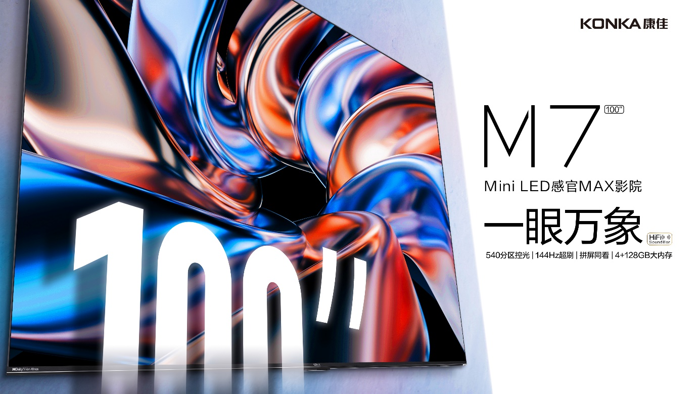 本次活动期间,康佳新品及大尺寸电视也参与了“以旧换新”优惠活动,比如康佳2024年春季电视新品——100英寸Mini LED感官MAX影院新品M7。该新品配备100英寸超广角巨幕,拥有130%裸眼级广色域,动态还原自然原彩本色,带来更沉浸的画面色彩。采用Mini LED高密度精准点控光,五百级分区专灯专控,带来更高的亮暗对比度和丰富色彩层次。搭载AI超感知画质引擎,多项超感知先进画质算法智能识别,并逐帧调校画面细微参数,秒出大片影像。配备大屏跨生态系统ME柚OS,拥有拼屏同看、多样操控体验、海量应用等软件功能,畅享便捷大屏娱乐生活。活动期间,100M7在原零售原价基础上,以旧换新优惠1000元!