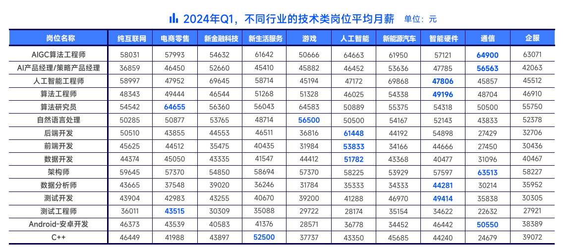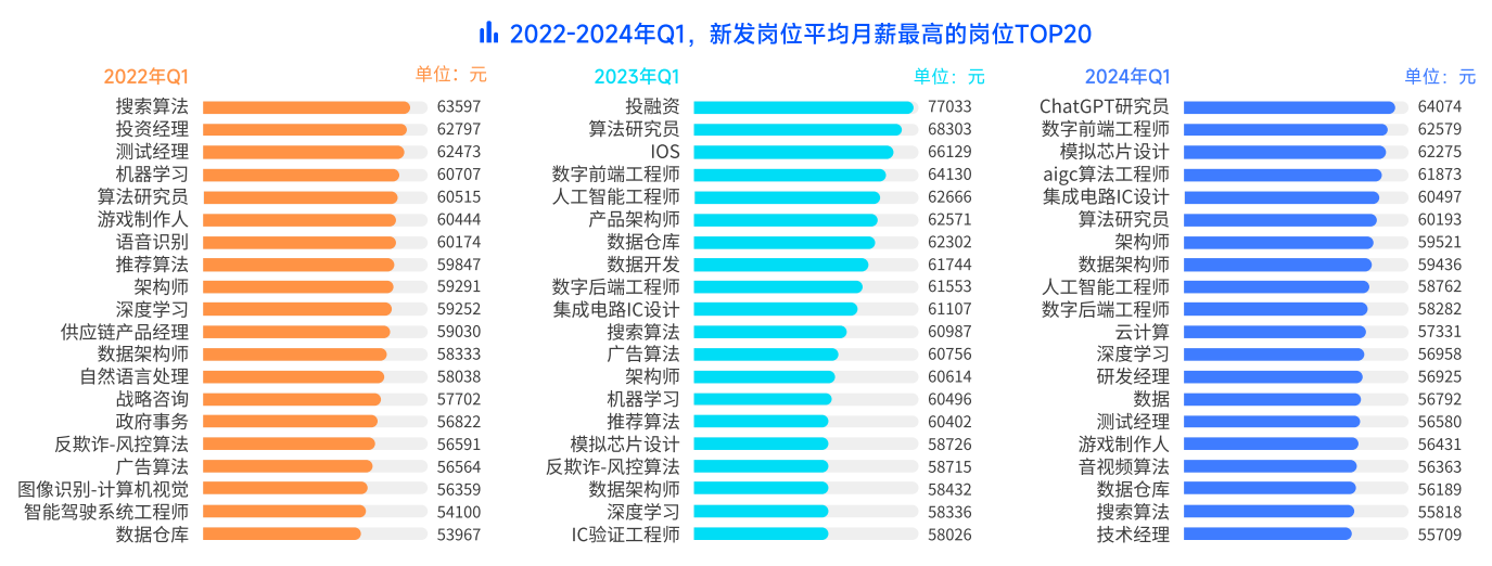 《洞察》同步公布了2024年第一季度的高薪职业,给职场人提供了求职参考。