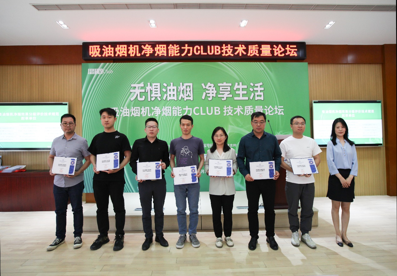 为首批吸油烟机净烟效果分级认证企业代表颁发认证证书