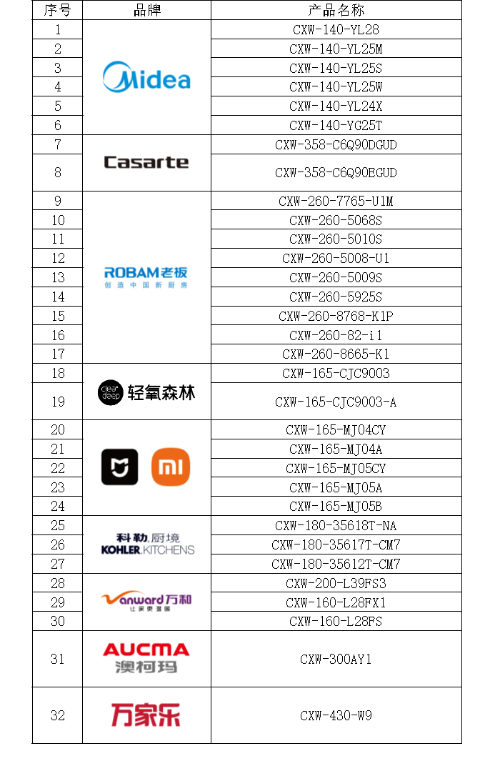 论坛上发布了9个品牌的32款首批通过了吸油烟机净烟效果1级净烟认证产品,经中家院(北京)检测认证有限公司的检测,美的牌CXW-140-YL28等6个型号吸油烟机,卡萨帝牌CXW-358-C6Q90DGUD、CXW-358-C6Q90EGUD型吸油烟机,老板牌CXW-260-7765-U1M等9个型号吸油烟机,轻氧森林牌CXW-165-CJC9003、CXW-165-CJC9003-A型吸油烟机,米家牌CXW-165-MJ04CY等5个型号吸油烟机,科勒牌CXW-180-35618T-NA等3个型吸油烟机,万和牌CXW-200-L39FS3等3个型号吸油烟机,澳柯玛牌CXW-300AY1型吸油烟机,万家乐牌CXW-430-W9型吸油烟机,符合T/CAS 848-2024《吸油烟机净烟效果分级评价技术规范》标准要求,获得了中家院(北京)检测认证有限公司的检测报告和认证证书,成为首批吸油烟机净烟效果分级认证产品,同时被《轻工标准与质量》杂志评为轻工对标优质产品推荐给消费者。