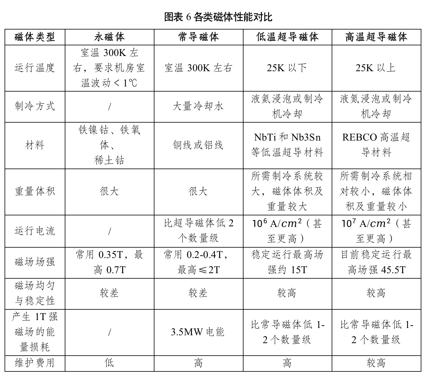高温超导磁体具有磁场高、重量体积小等核心突出优势。相比于常规磁体,超导磁体可以在不损耗焦耳热的情况下,产生很高的运行电流,进而在大空间内产生高场强、高稳定性、高均匀性的磁场。