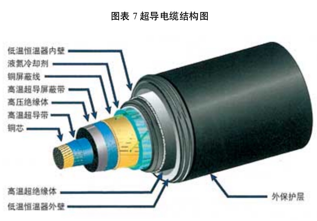 超导电缆在海缆和陆缆的建设中,都将发挥重要作用。陆缆主要应用于陆上配电网建设,随着经济增长和城镇化进程加快,社会用电需求快速增长,超导电缆能够以极小的占地满足高城市建筑密度区的电力扩容需求,具有较高的经济价值和综合社会效益。海缆是海上风电建设的重要组成部分,与传统海缆相比,超导海缆投资增长2-3倍,但输电能力能够提升10倍以上,且能大幅降低海上升压站、换流站的投资强度,并能解决传统铜海缆电流输运上限低等技术问题,具有良好的技术前景和极高的经济效益。
