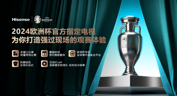 海信还是2024年欧洲杯官方赞助商,为了球迷看得爽,海信专门优化了很多与观赛体验息息相关的功能。拿欧洲杯定制电视E8系列来说,178°超广视角,满足多人一起观赛,每个位置都是C位体验;144HZ极速高刷新黑曜屏,运动画面丝滑流畅;最大100英寸的超大屏幕,提供如临现场VIP席位的沉浸感。