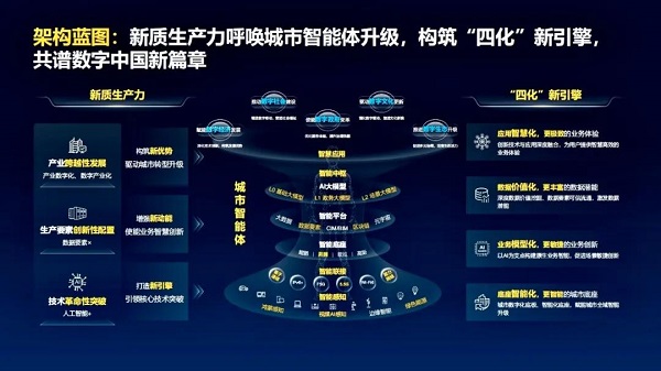 底座智能化、业务规模化、数据价值化和应用智慧化,这四个新的引擎,也是华为城市智能体的四个“抓手”,为城市打造能够满足全域智能化的“新质生产力”。
