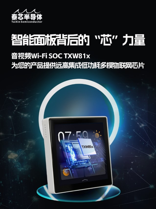 产品广泛的应用使公司能够准确扑捉市场脉络,荣获“2023-2024中国无线通信芯片市场最佳产品奖”的音视频Wi-Fi SOC TXW818是珠海泰芯半导体在深入理解市场需求,在2023年底推出的系列芯片,创新的WiFi+BLE多模物联网SOC芯片,不仅将两种连接方式集成在一颗32Bit微处理器上,内置M-JPEG视频编解码器和视频加速器、能够满足DVP\UVC\SPI镜头输入、高清视频、立体声等需要用音视频+LCD显示屏+WiFi产品的高强度任务的需求,并且WiFi+BLE多模为用户提供快速简单的产品连接配网体验。