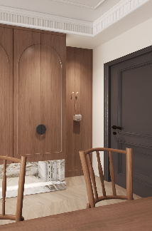 所以我们在改造的,时候增加了客厅的,储物面积,给餐厅留出空间。并且划分功能分区,重新定义,家庭洄游动线。旧房空间缺少,合理的功能分区,没有足够的,收纳储物空间。因此我们在,设计的时候就做了,电视墙背景一体储物柜,入户柜、展示柜,基本满足了生活收纳。同时我们对卧室改造的衣柜,书房的整面书墙。