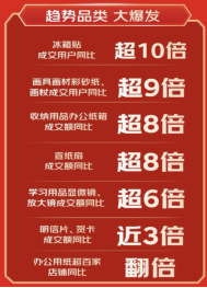近年来,消费者对文具的需求呈现多样化、个性化和高端化趋势。京东618持续围绕消费需求,以海量优惠和周到服务,助推文具品类销售爆发。京东618全周期,冰箱贴成交用户数同比增长超10倍;画具画材彩砂纸、画杖成交用户数同比增长超9倍;收纳用品办公纸箱成交额同比增长超8倍;宣纸扇成交额同比增长超8倍;学习用品显微镜、放大镜成交额同比增长超6倍,还有明信片、贺卡以及办公用纸等也都实现了快速增长。由此可见,功能多样的学习用品、增加生活幸福感的文具产品,都受到了消费者的欢迎。